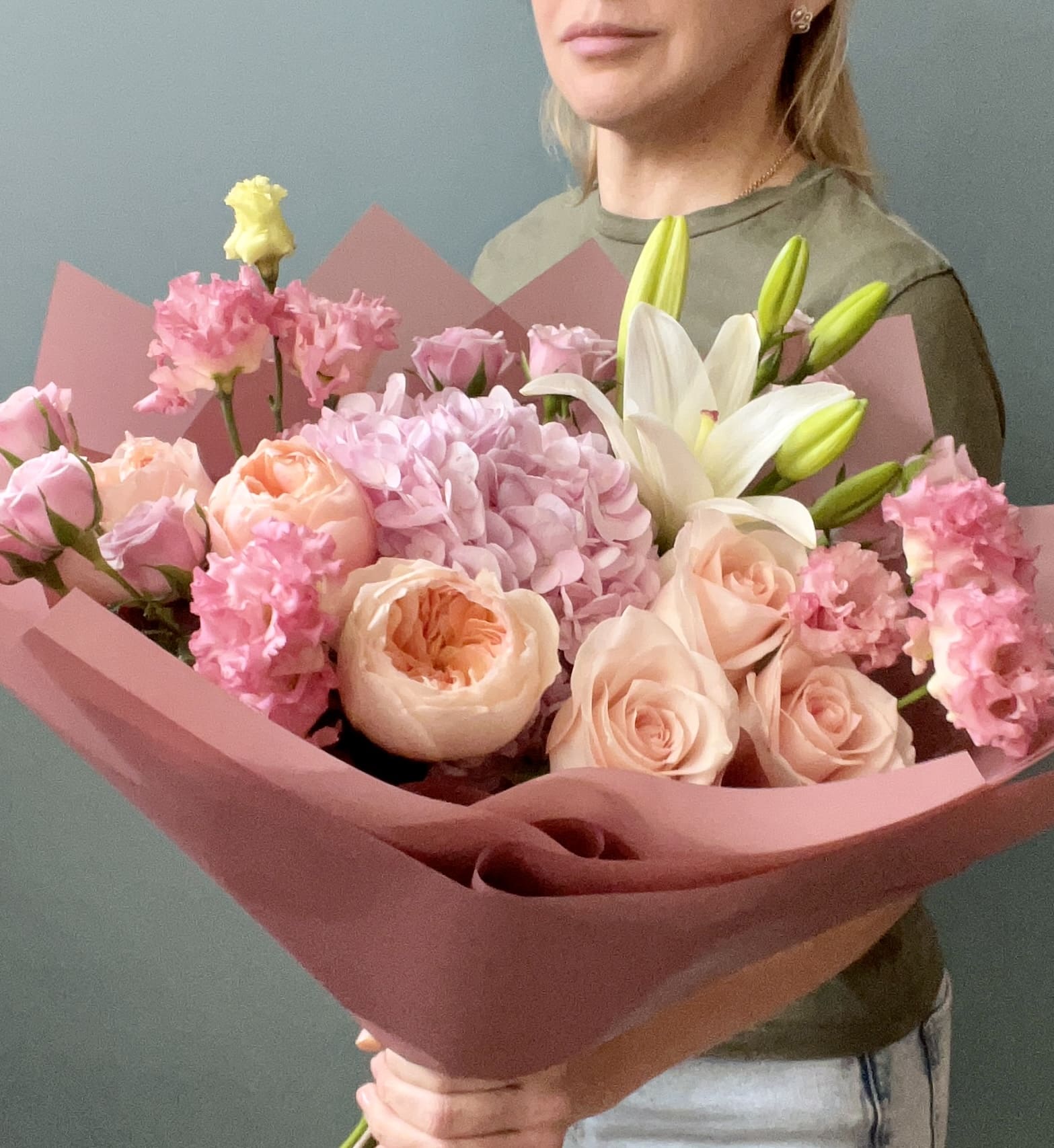 При отсутствии каких-либо цветов, флорист предложит замену, сохраняя цветовую гамму и стиль букета.